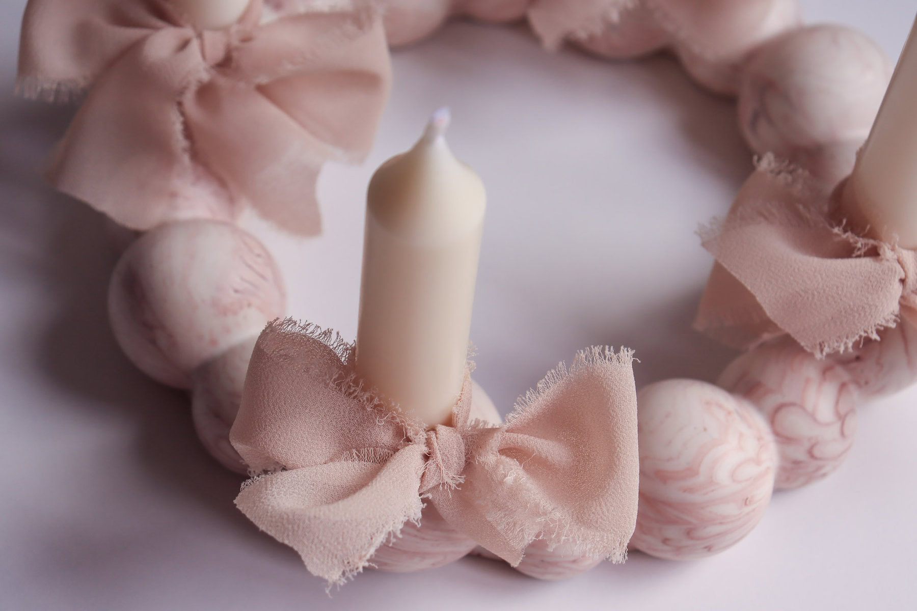 Ovaj adventski vijenac spaja prirodne tonove i suvremeni dizajn – izrađen od Jesmonite materijala, koji podsjeća na kamen, ali je lagan i postojan.