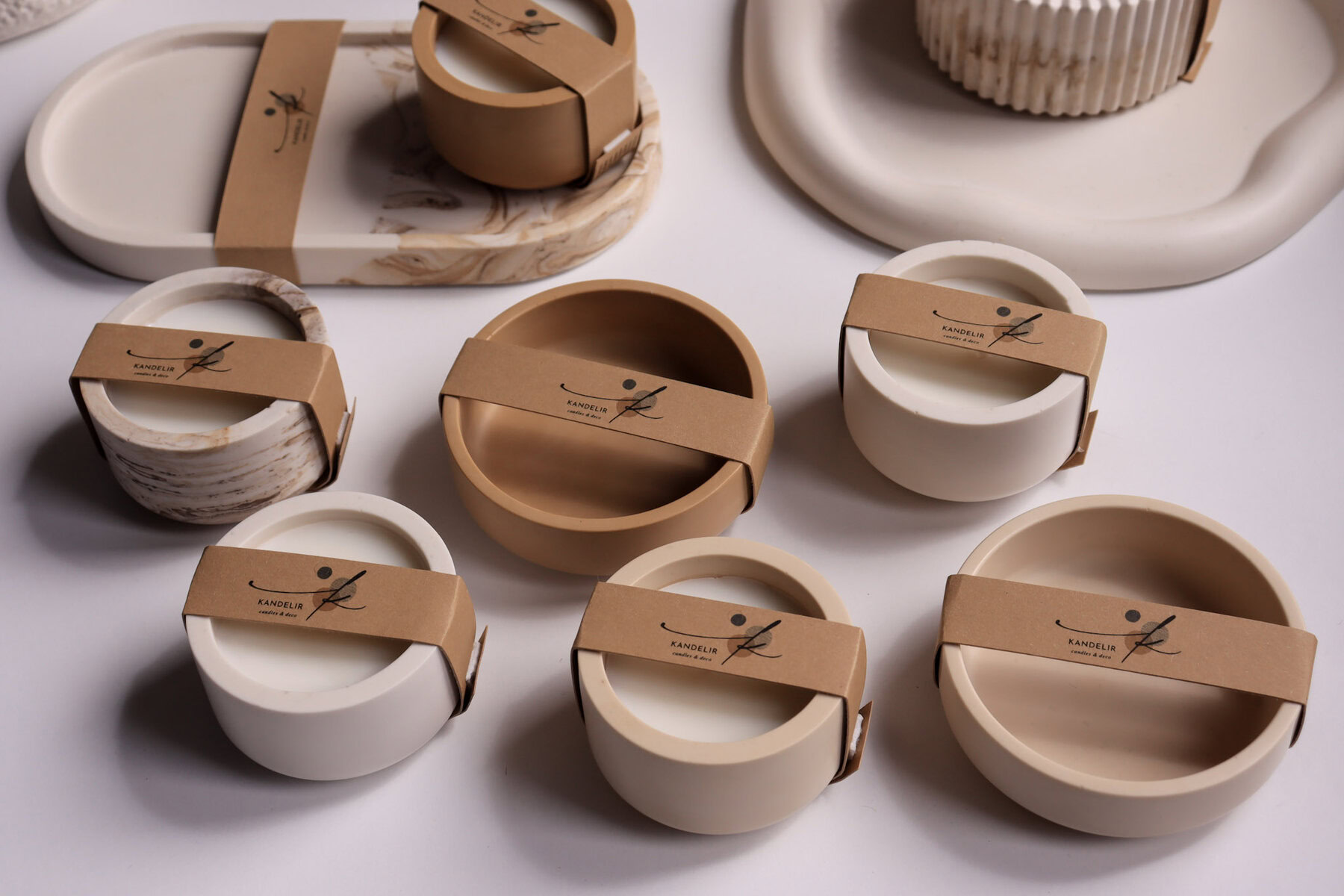 Posuda u bijelim nijansama ili smeđoj imitaciji mramora dodaje suptilan dekorativni element i upotrebljiva je i nakon što svijeća izgori – savršena za nakit ili kao unikatni ukras (oprati nježnom pamučnom krpicom, toplom vodom i sapunom).