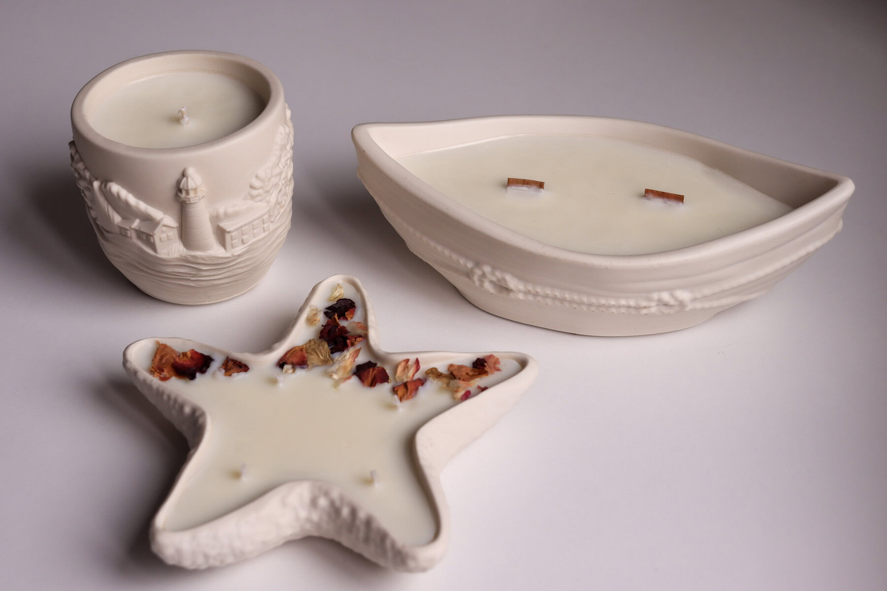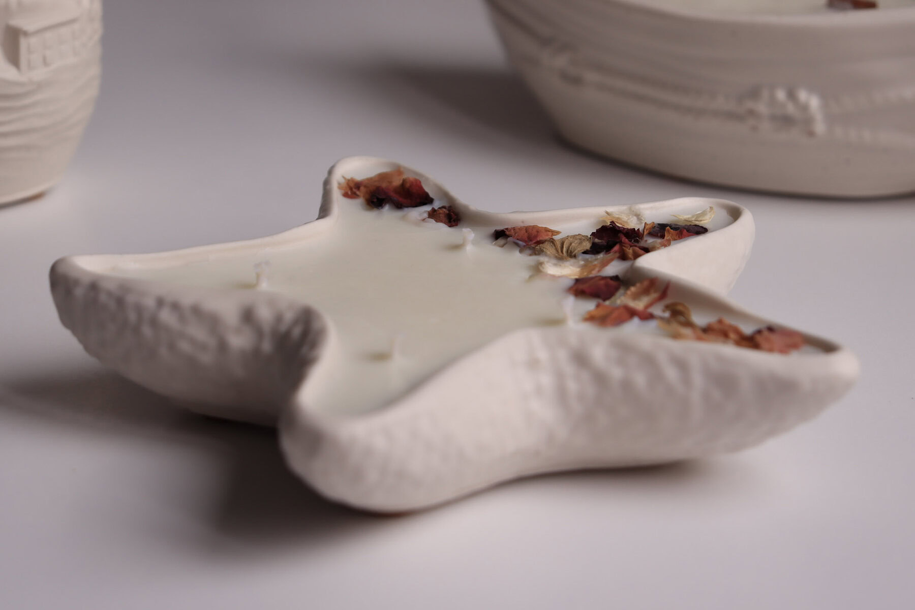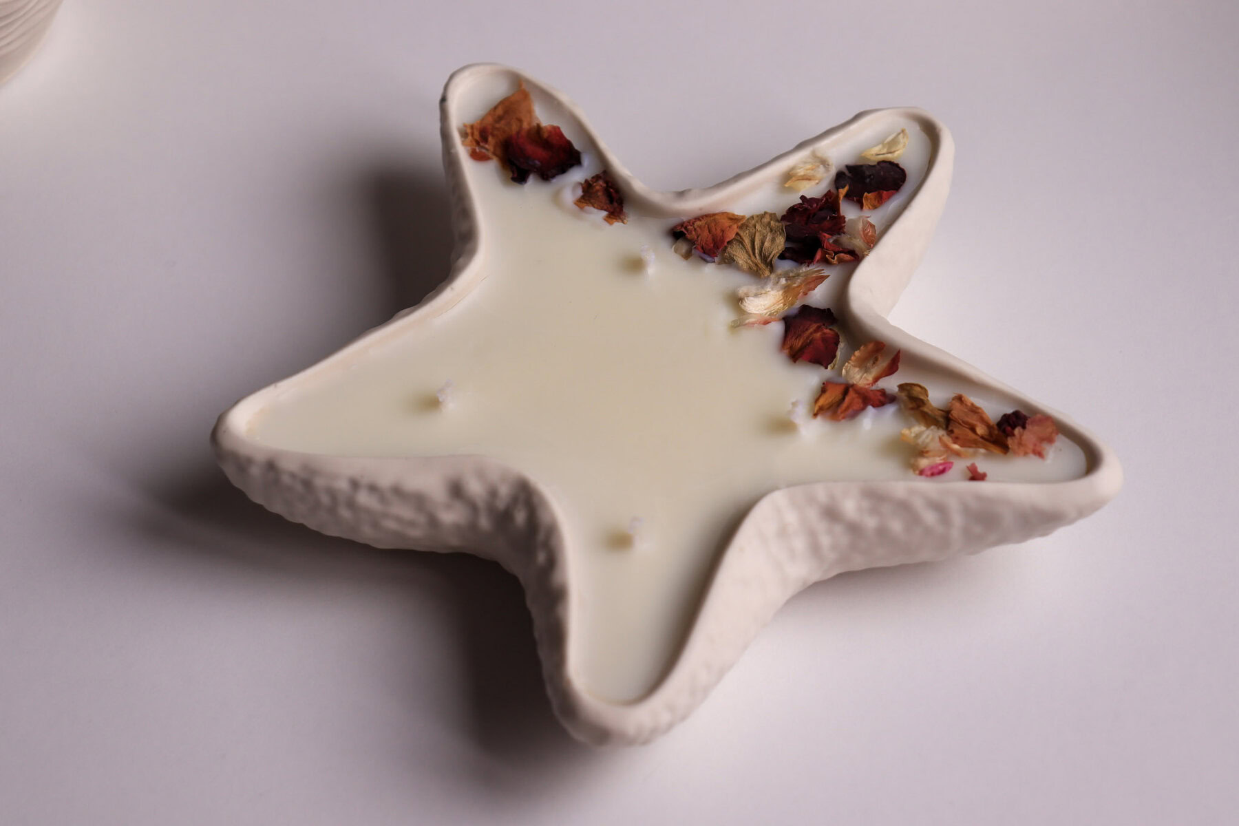 Unesite dašak ljeta u svoj dom s unikatnom posudicom u obliku morske zvijezde, ručno izrađenom od ekološkog Jesmonite materijala. Njezin neutralan, mat izgled savršeno se uklapa u svaki interijer, a tekstura podsjeća na prirodnu površinu koralja. Mirisna svijeća izlivena je od čistog sojinog voska i pamučnih fitilja.