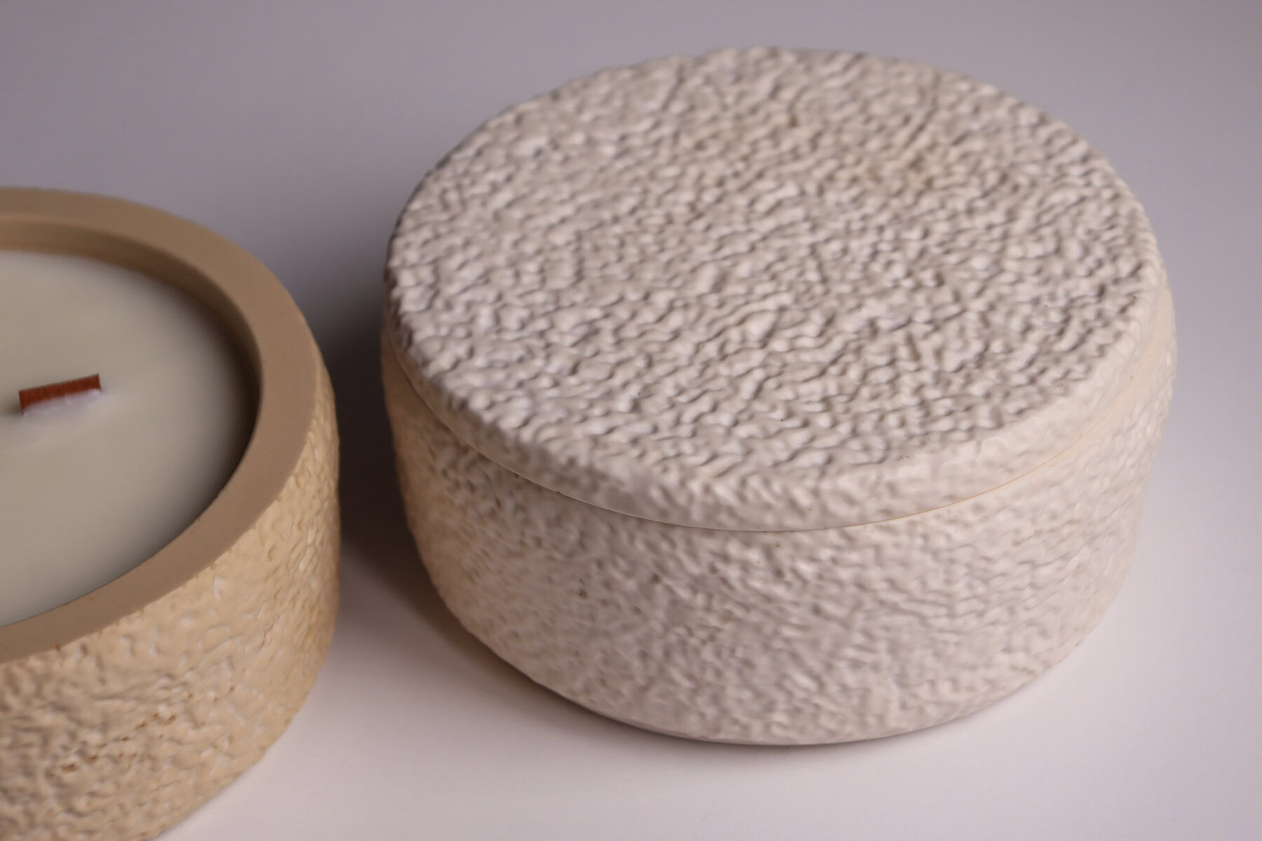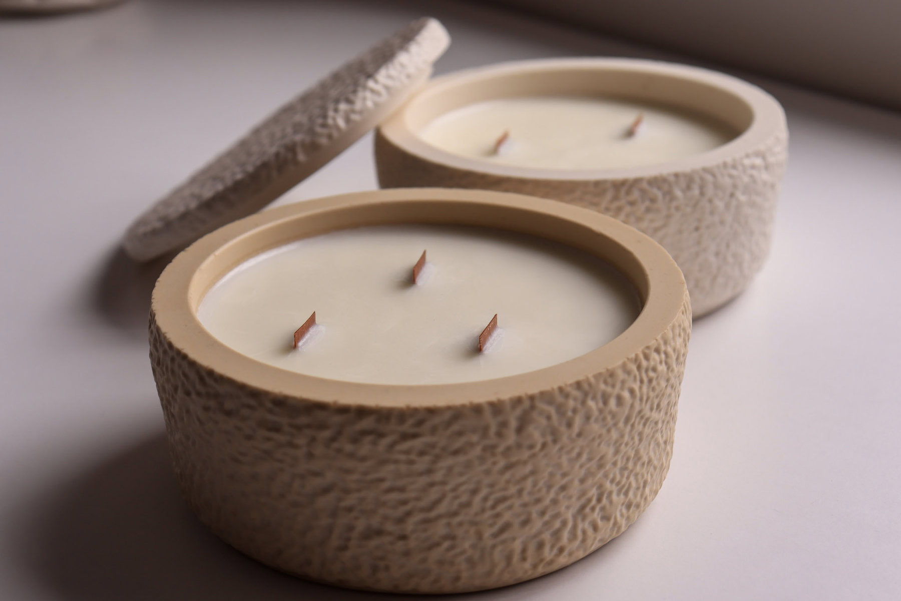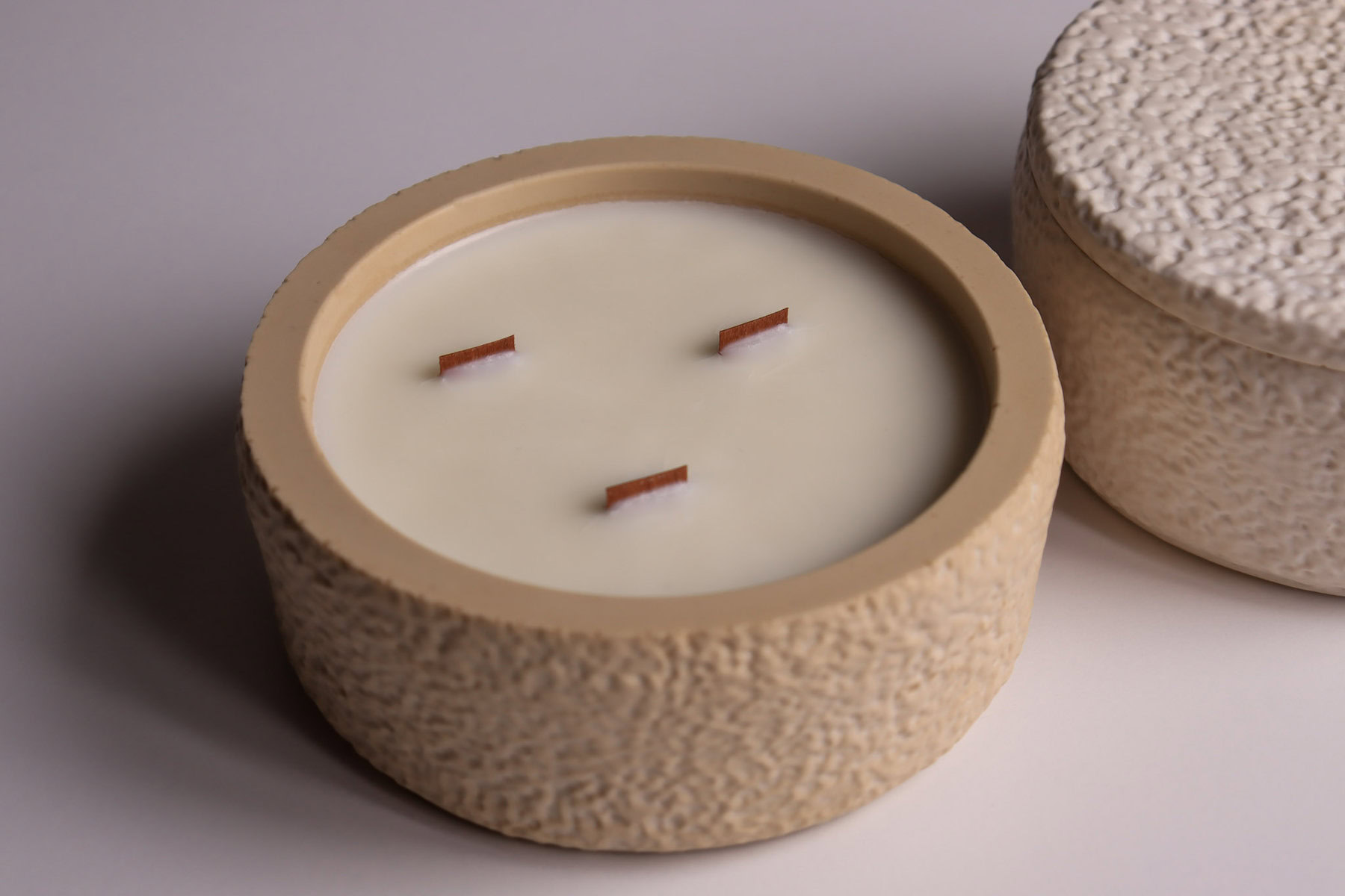 Mirisna svijeća s finom teksturom i prirodnim tonovima koji se lako uklapaju u svaki interijer. Svijeća je napravljena od čistog suncokret voska EU porijekla (sa ECOCERT certifikatom) te ima dva do tri fitilja )ovisno o vrtsi fitilja) koji pružaju ugodno i ravnomjerno gorenje.