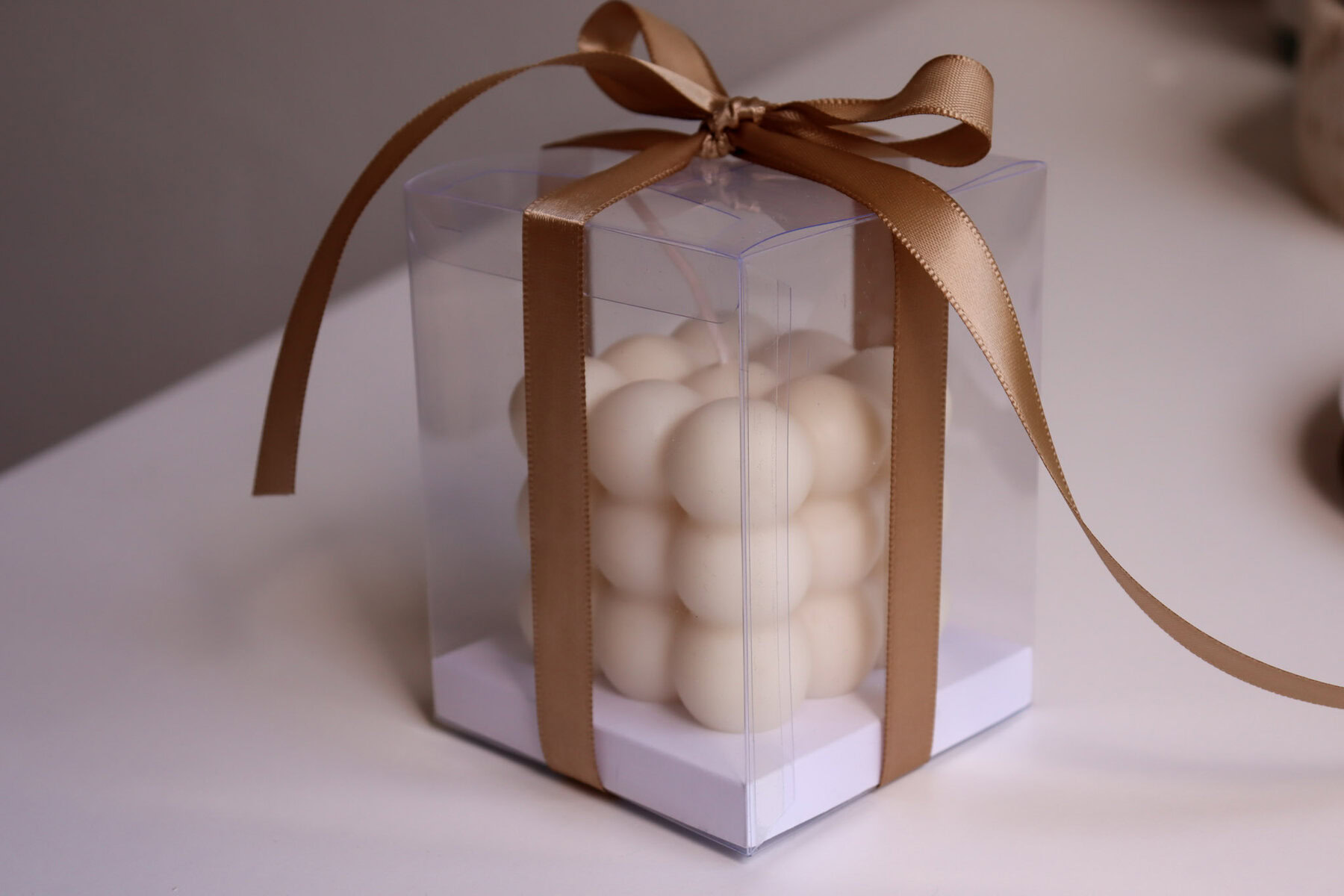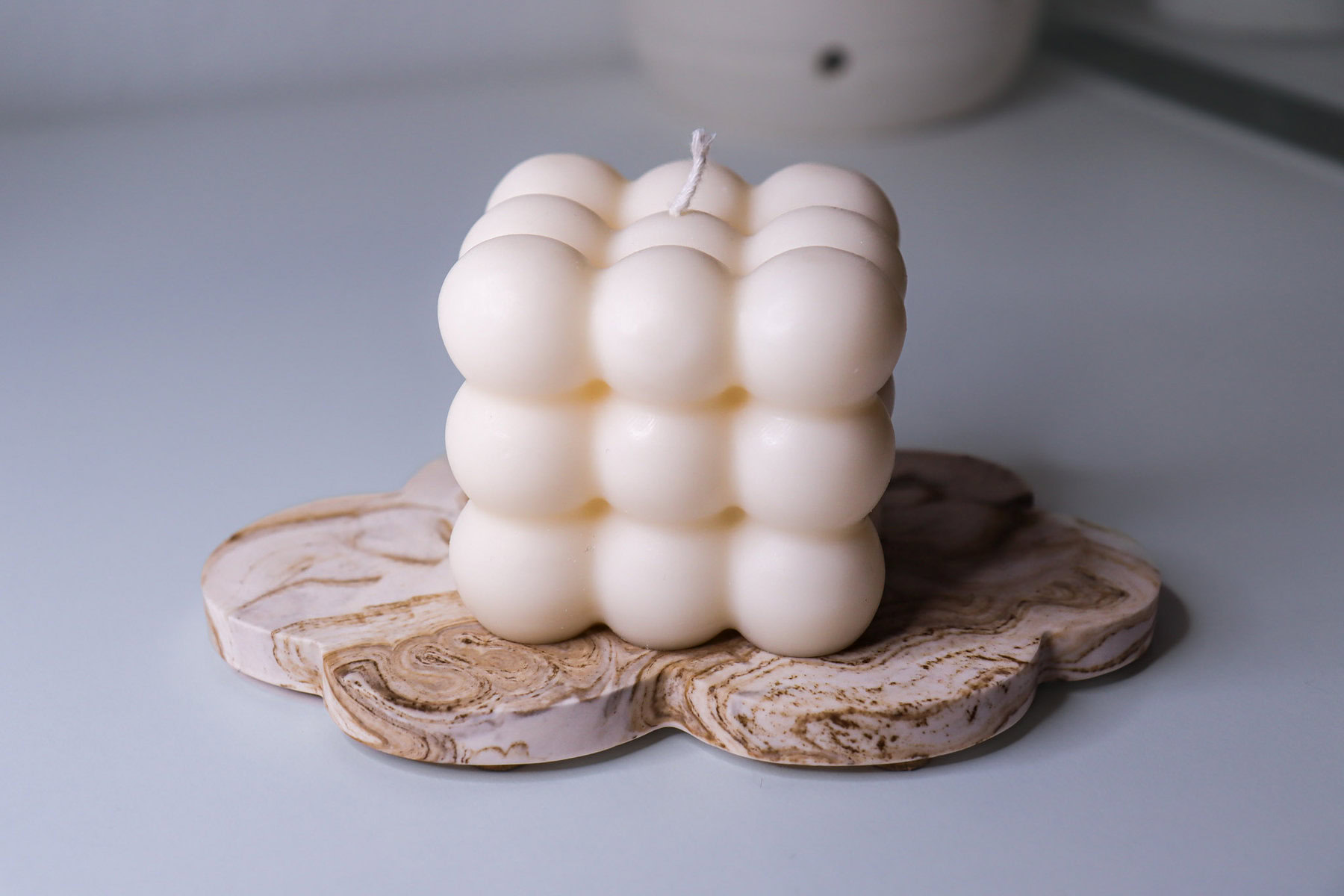Velika dekorativna svijeća Bubble izrađena je od čistog sojinog voska i pamučnog fitilja te je savršen dodatak dekoru vašeg doma. Bilo za uživanje u plamenu svijeće za smirujući ugođaj ili jednostavno kao dekoracija.