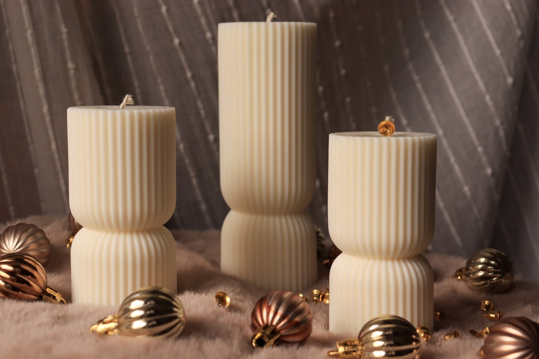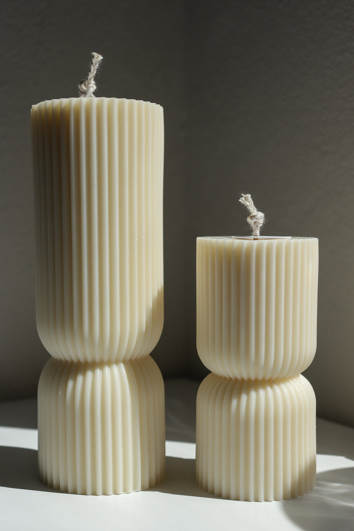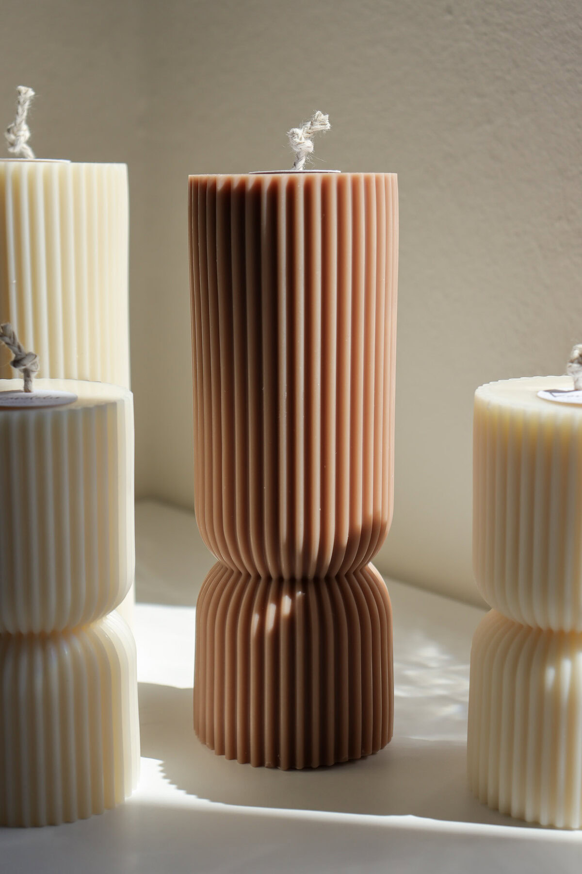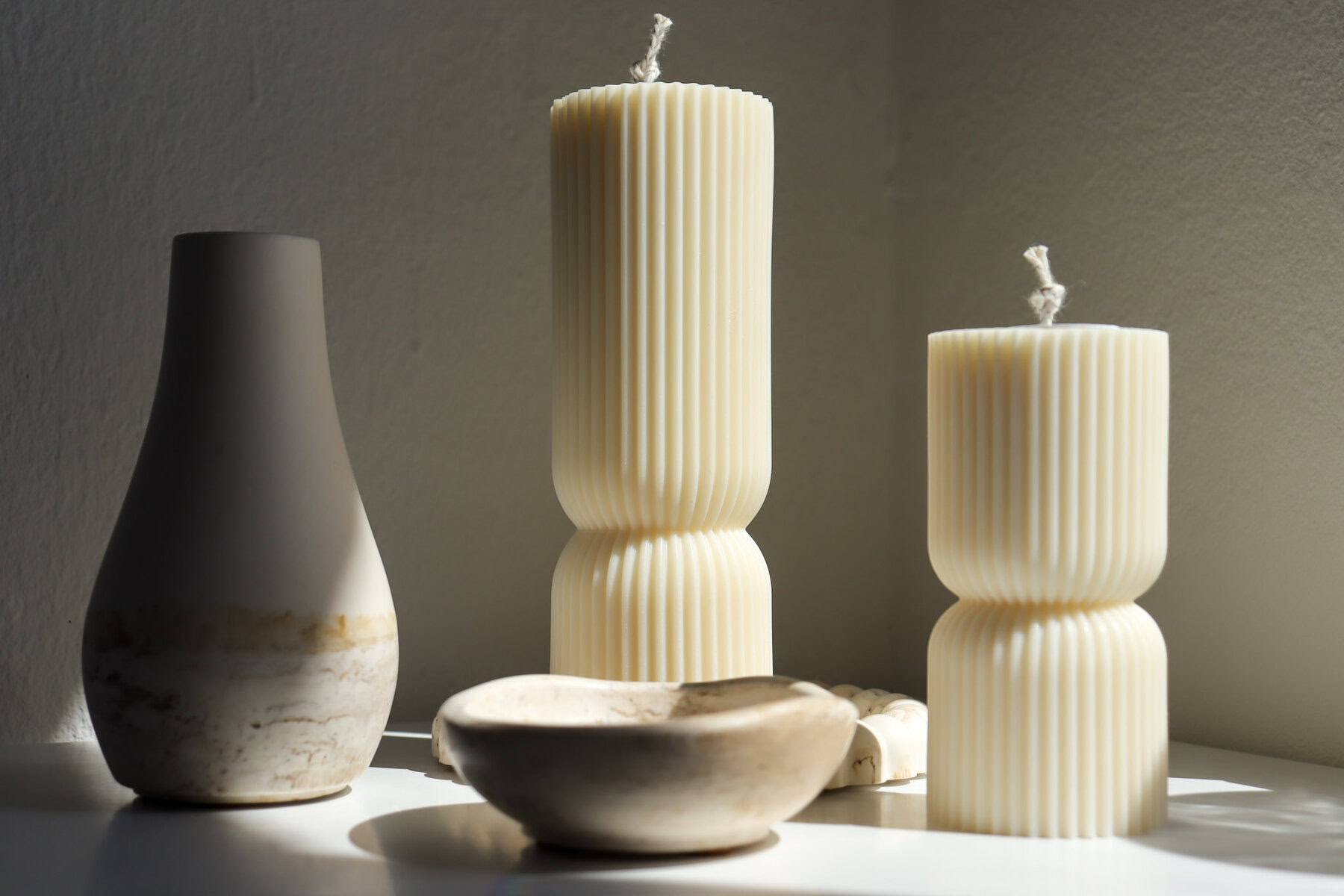 Unesite ritam, mir i toplinu u svoj prostor. „Ritual“ je pilar svijeća s elegantnim prugastim dizajnom, dostupna u pet nijansi – od umirujuće bijele i opuštajuće bež do tamnijih toplih nijansi. Ove svijeće pozivaju na pauzu, tišinu i svjesnost.