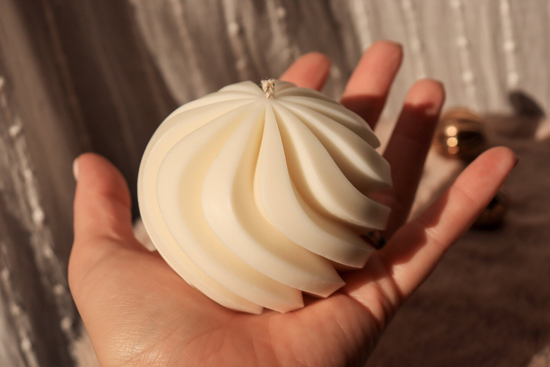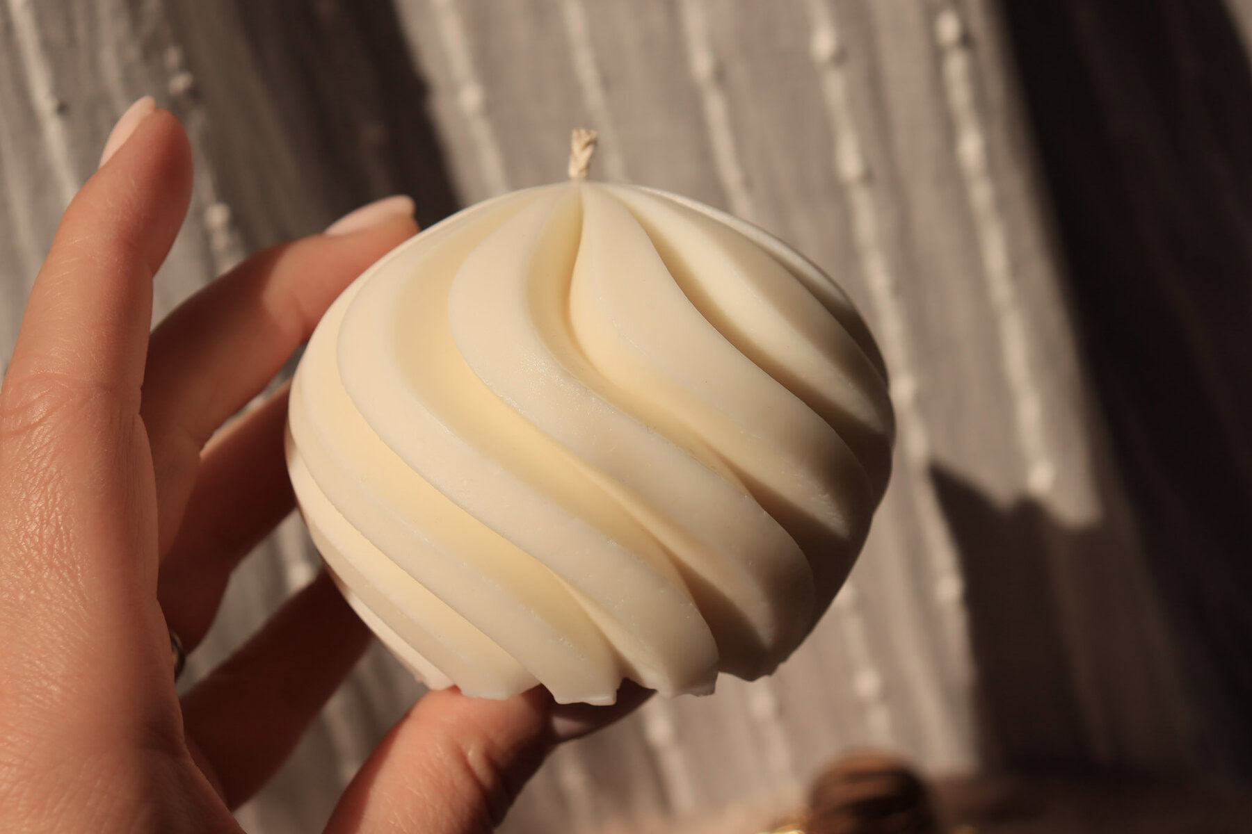 Plamen koji titra po glatkim oblinama svijeće unosi u prostor osjećaj mira i topline, pozivajući na trenutke opuštanja, introspekcije i uživanja u sadašnjem trenutku – bilo kao umirujući detalj u wellness kutku ili elegantna dekoracija koja odiše jednostavnošću i prirodnom ljepotom.