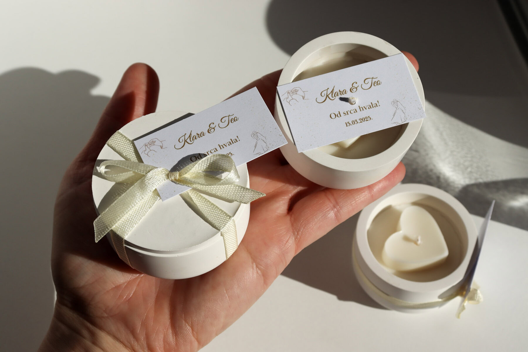 Ova ručno rađena mini zahvalnica u posudici od gipsa savršena je ideja kako zahvaliti svojim gostima na vjenčanju, krštenju ili nekoj drugoj prigodi.