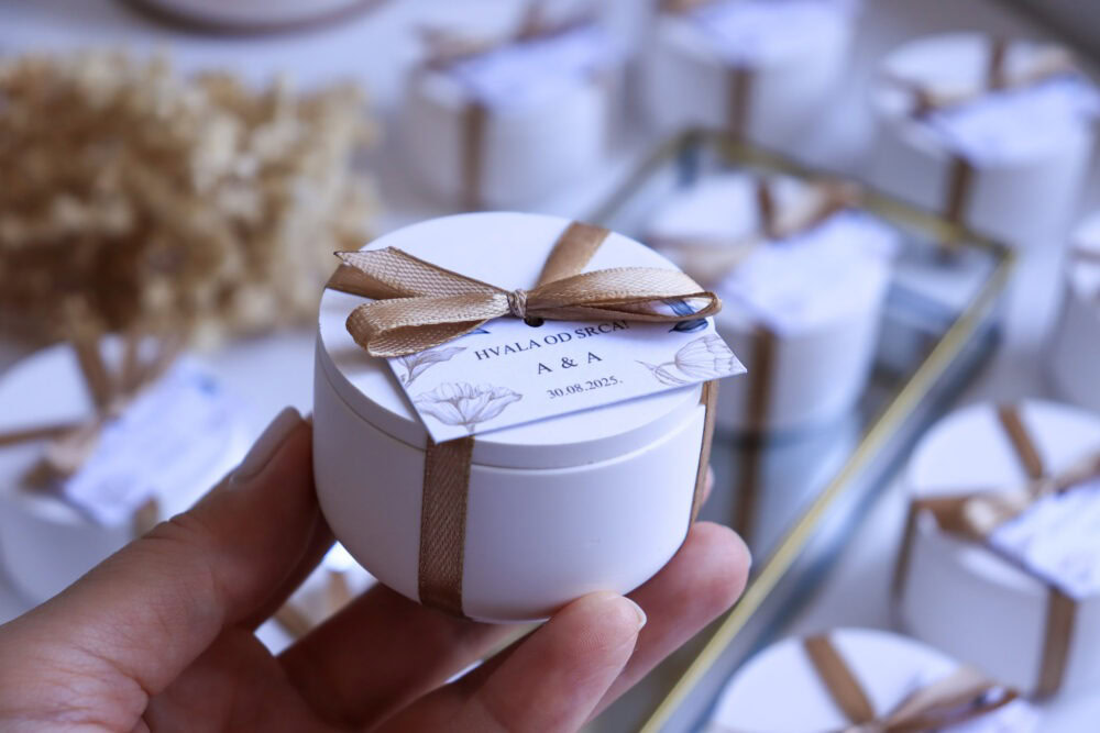 - Moguće je staviti dekorativno prstenje, zlatna slova, drveni natpis ‘love’ i slično – uz dodatnu nadoplatu.