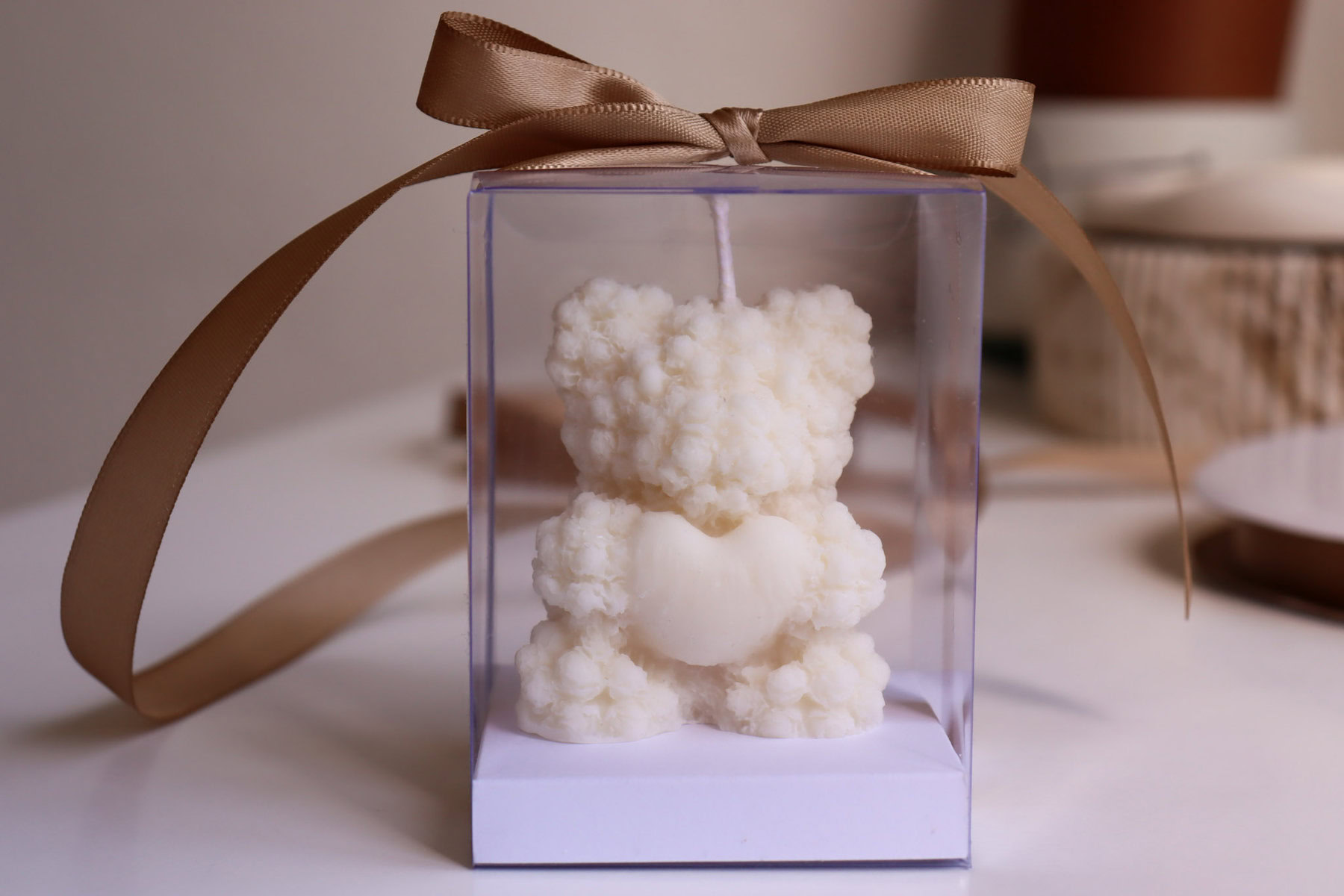 Svijeća od sojinog voska u obliku medvjedića sa srcem idealna je svijeća za Valentinovo ili Majčin dan, a svakako je predivna zahvalnica za razne posebne prigode.