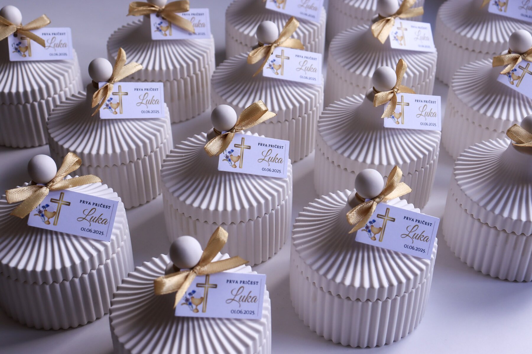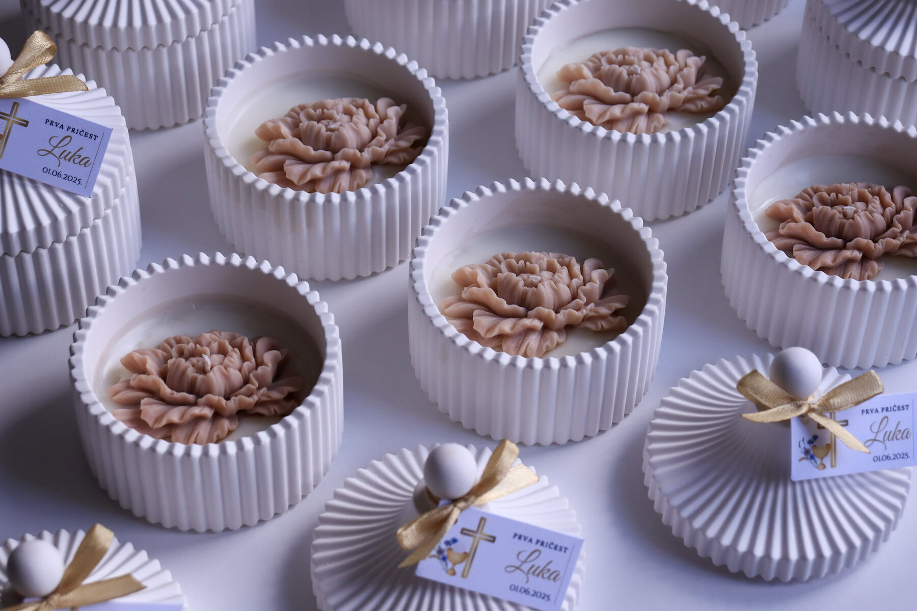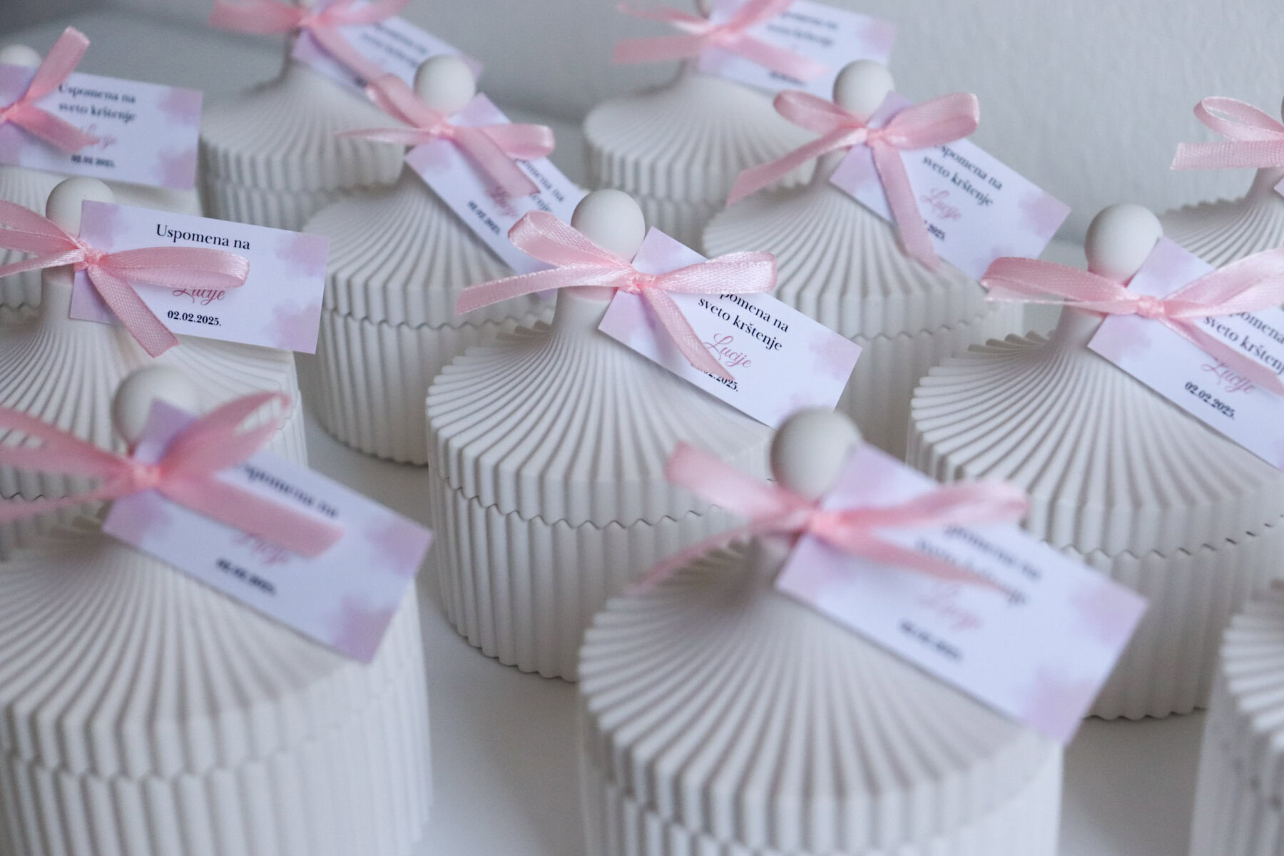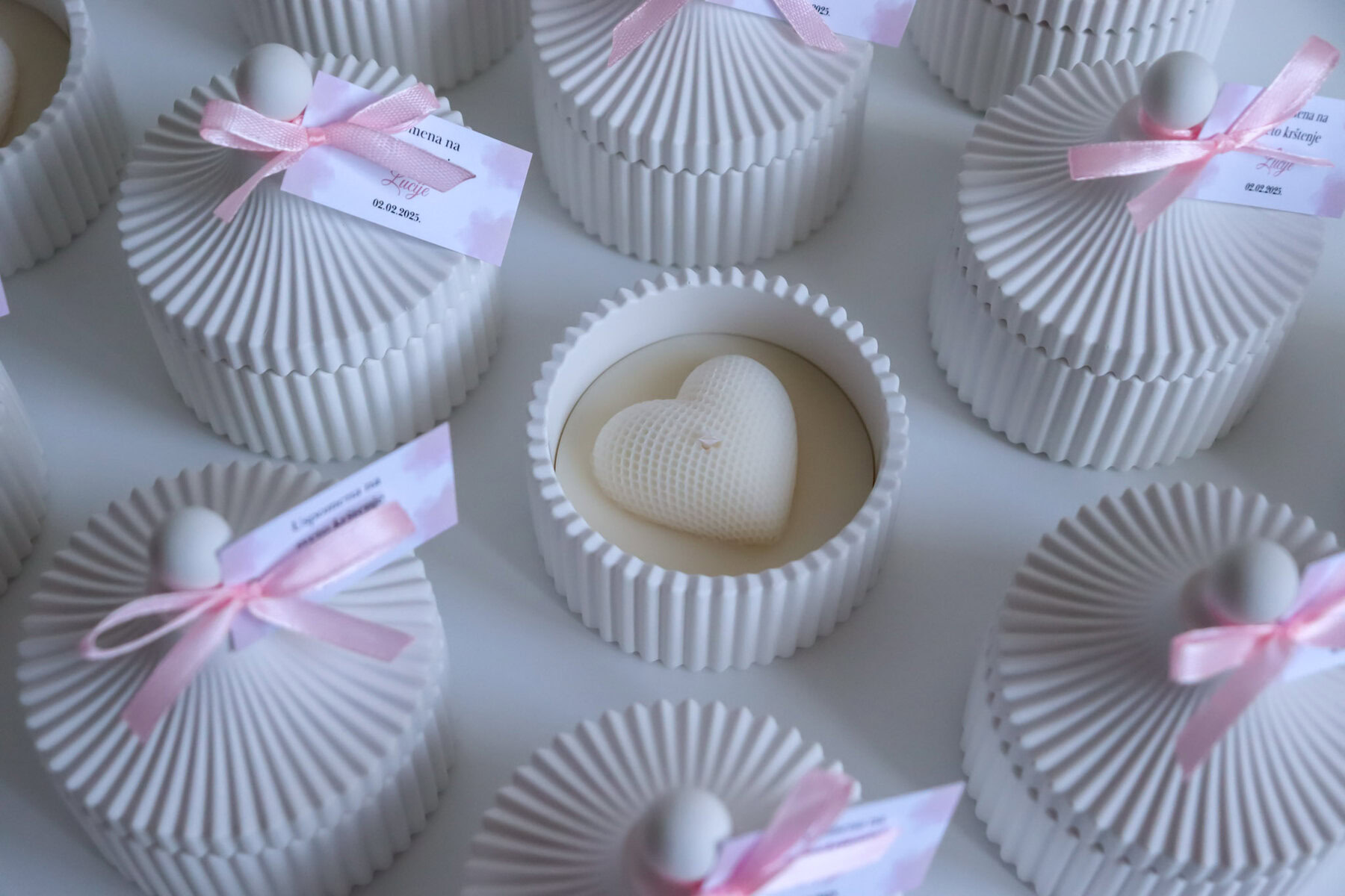 Zahvalnica u posudici od gipsa predivna je ideja kako zahvaliti svojim gostima na vjenčanju ili nekoj drugoj prigodi. Lagane su, elegantne, estetski neodoljive, posebne te mogu biti i mirisne. Savršen su odabir zahvalnica za ljetne mjesece zbog posude koja ih čuva od vrućine, topljenja i deformacije prilikom manipulacije.